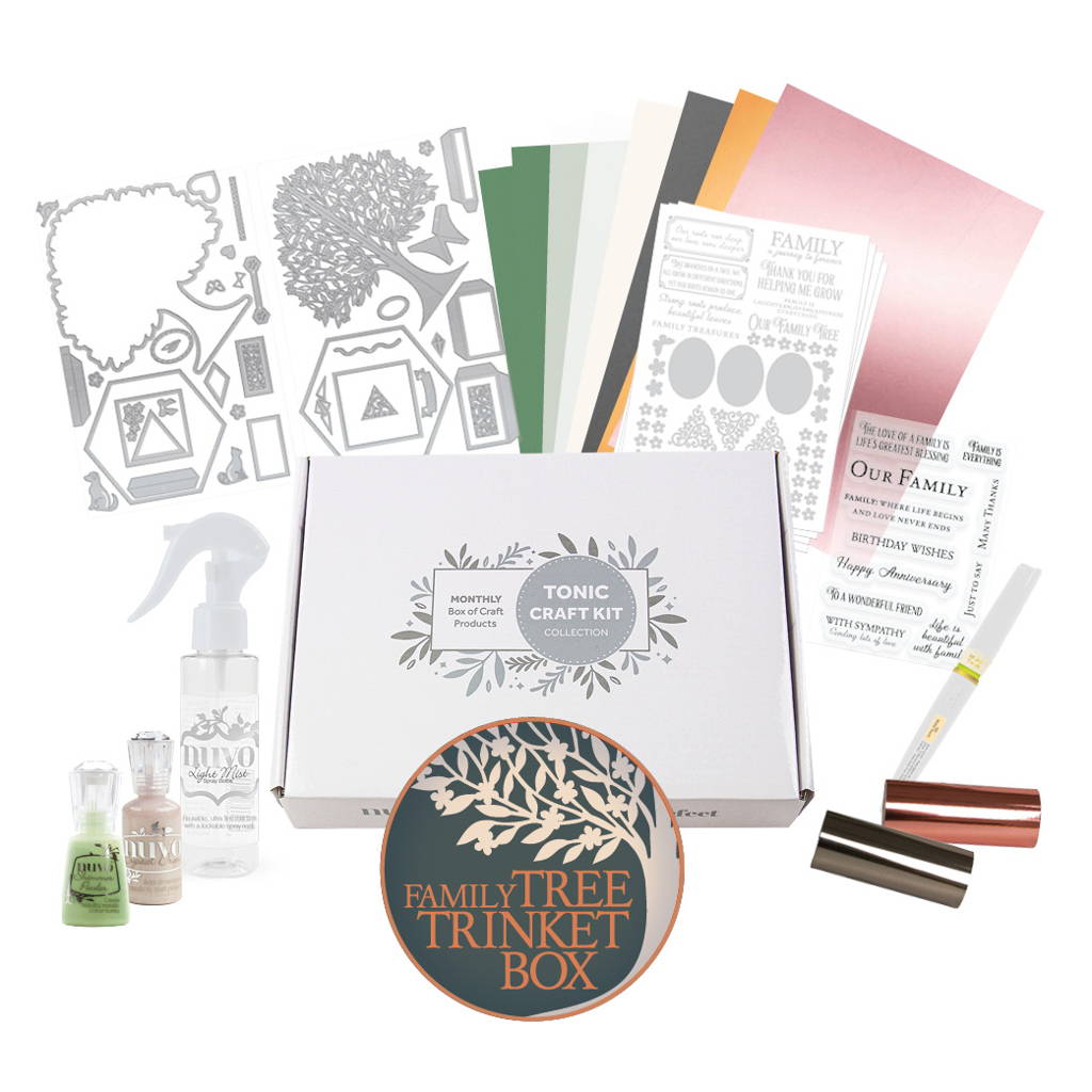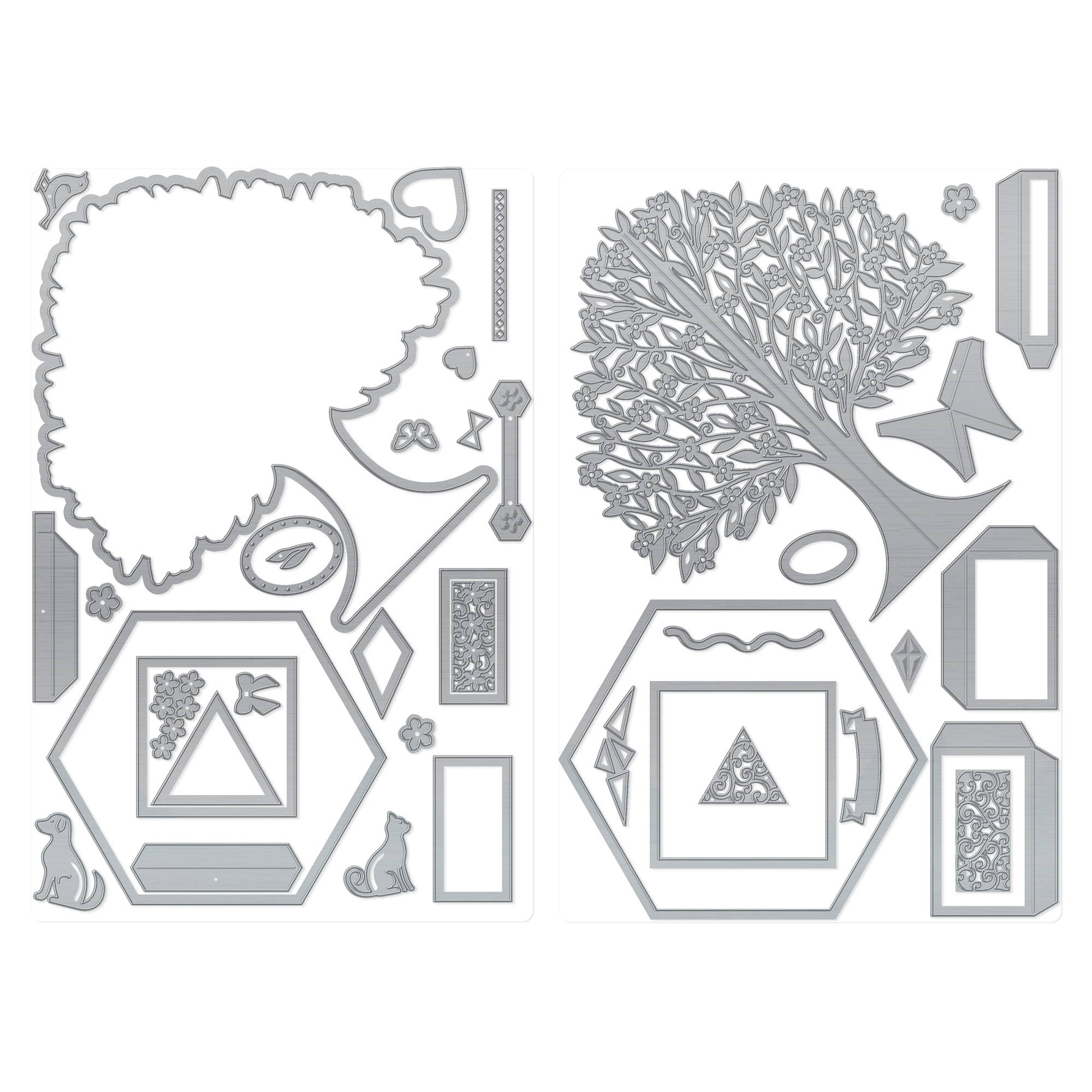 Exquisite three-dimensional Family Trees that also serve as trinket boxes! This essential collection includes 40 expertly designed dies. You'll find dies for creating hanging portraits, a stunning three-dimensional tree, an expandable hexagonal box with a drawer, and a variety of charming decorative elements. Perfect for creating Family Tree cards as well!