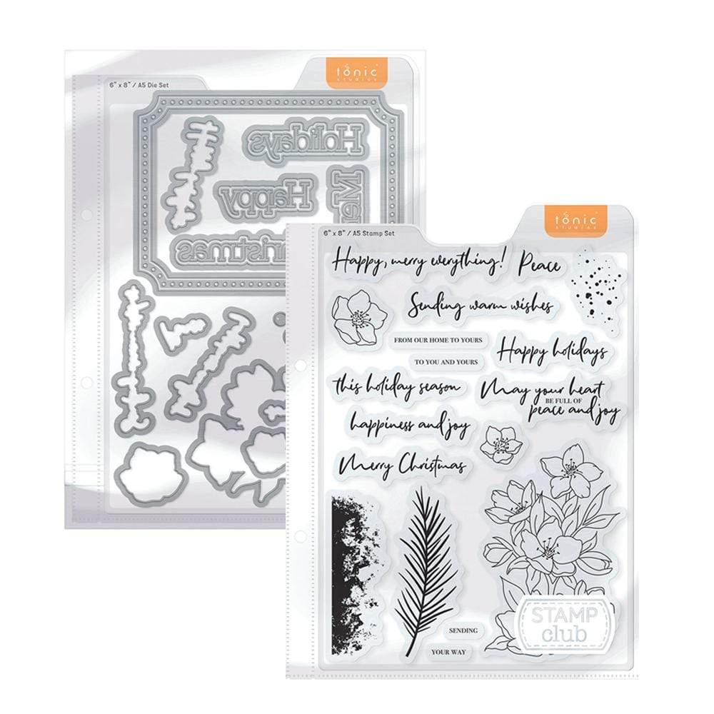 One such detail is name place settings for your guests (ideal especially if you do have a larger gathering and what to try and maintain a little order over who sits where and with whom!) So here is a set I have made in a slightly less ‘traditional’ colour palette using the Tonic Stamp Club Set ‘Christmas Rose’.