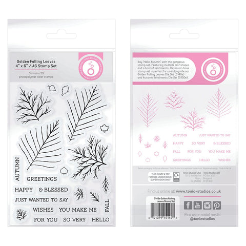 Say 'Hello Autumn' with this gorgeous stamp set. Featuring multiple leaf shapes and a host of sentiments, this must-have stamp set is perfect for use alongside our Golden Falling Leaves Die Set (5148e) and Autumn Sentiments Die Set (5150e).
