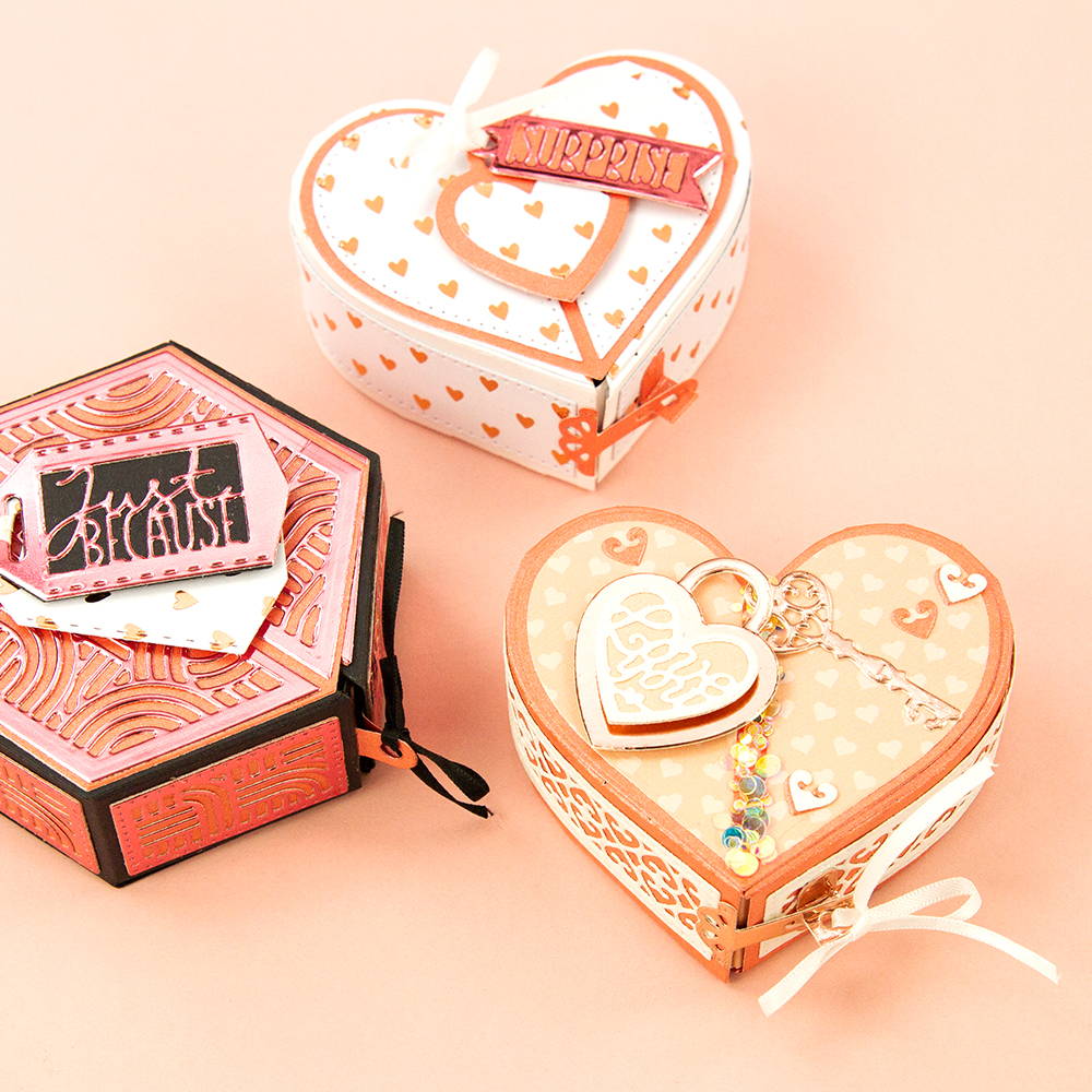 ✓ Designed to createboth heart & hexagon shaped gift boxes!