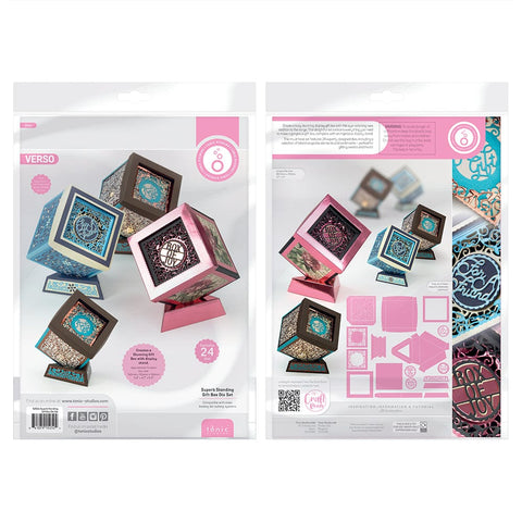 Create a truly stunning display gift box with this eye-catching new addition to the range. This delightful set contains everything you need to make a gorgeous gift box, complete with an ingenious display stand. This must have set features 24 expertly designed dies, including a selection of interchangeable elements and sentiments - perfect for gifting sweets and treats!