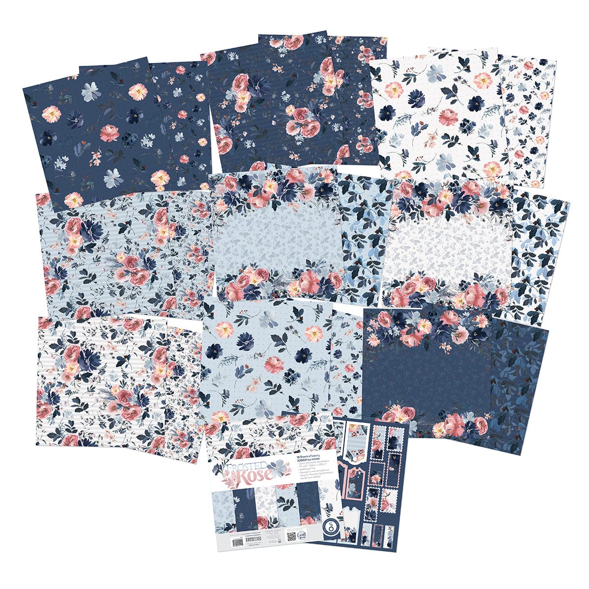 Introducing Frosted Rose 12"x12" Art Pad, a luxurious card pack with stunning imagery inspired by winter florals. The pad includes 2 sets of 9 12" x12" 200gsm sheets that are acid-free and double-sided for flawless coordination. Additionally, the pad comes with a sheet of decorative ephemera tags that can either be fussy-cut or die-cut using the Tags and Stamps Die Set (item 5523e).