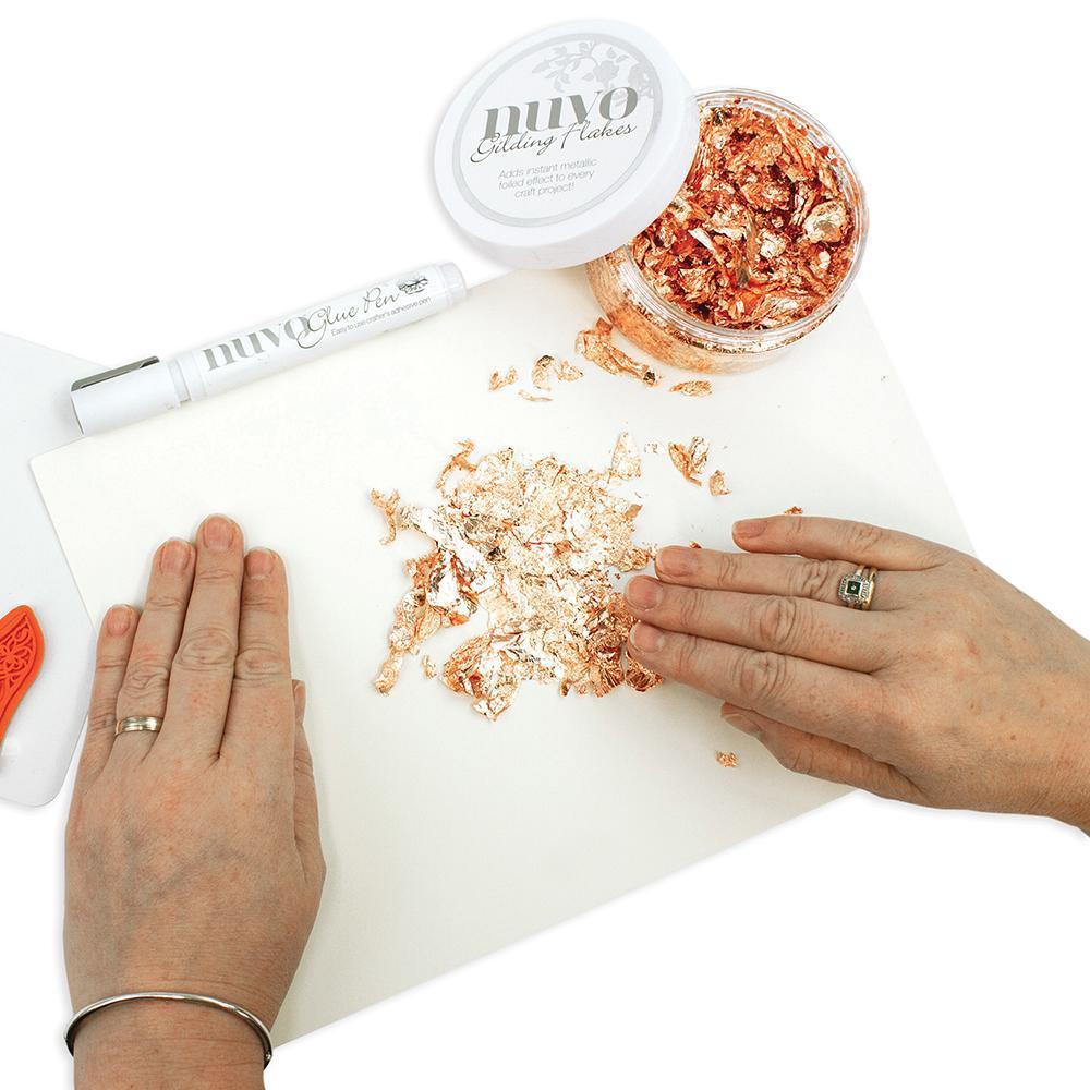 Nuvo Gilding Flakes will add some extra metallic imagery to your craft projects! For decorative borders or covering larger areas, these flakes are easy to use and perfect for making your designs stand out. Combine with the Nuvo Glue Pens and brush away the excess to create detailed, elegant designs.
