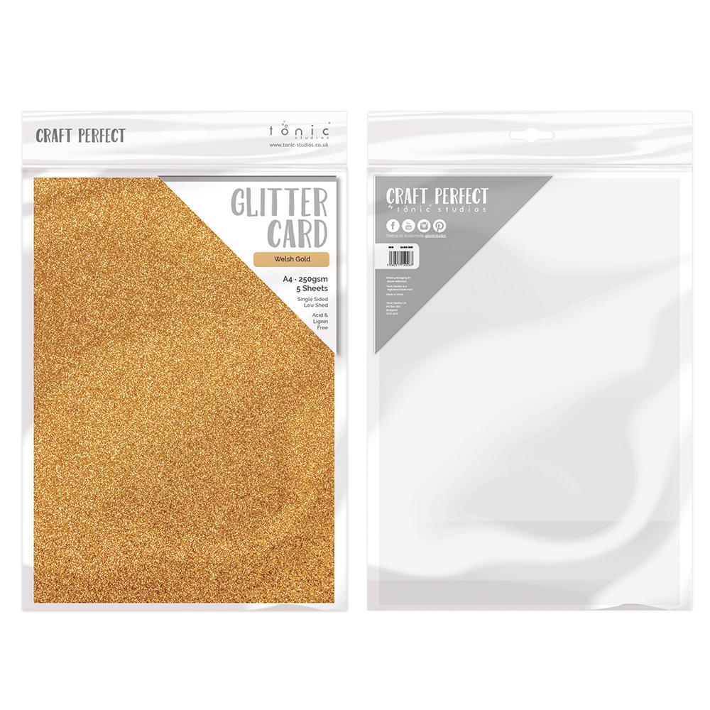 Craft Perfect – Glitter Card - Welsh Gold - A4 - 210mm x 297mm - 250gsm - 5 Sheets - 9942E